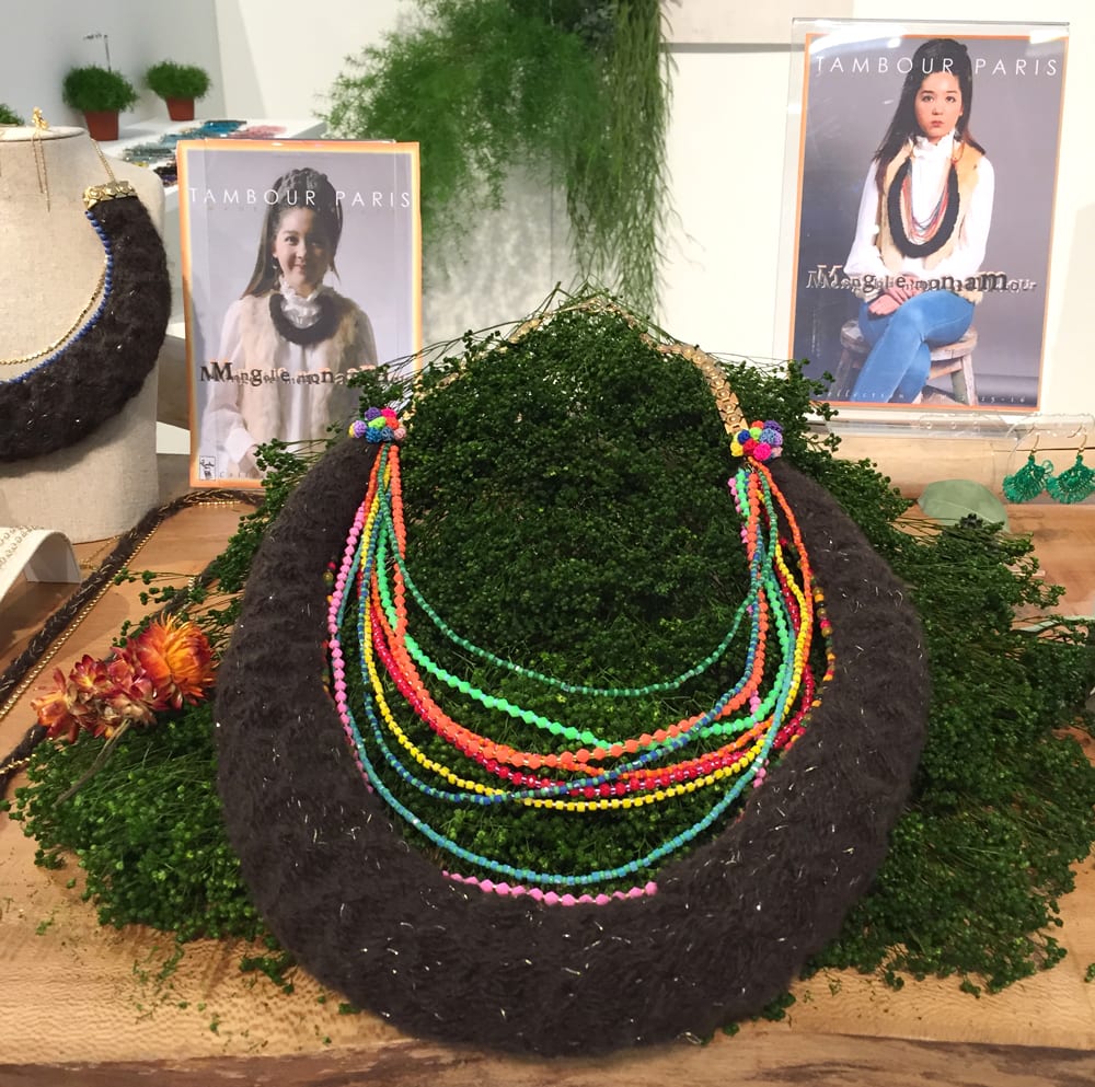 Tambour Paris; présentation d’une collection bijoux laine, fil et métal  inspirée des traditions et artisanat de Mongolie. « Mongolie mon amour » , des bijoux parures, haut en couleur, légers et fantaisistes.