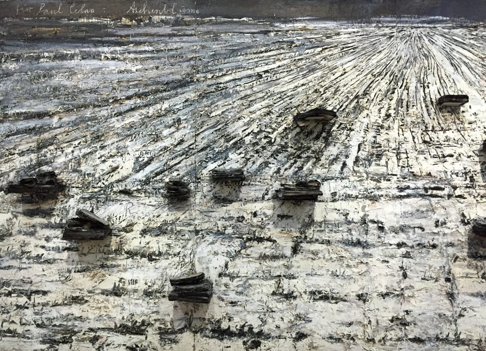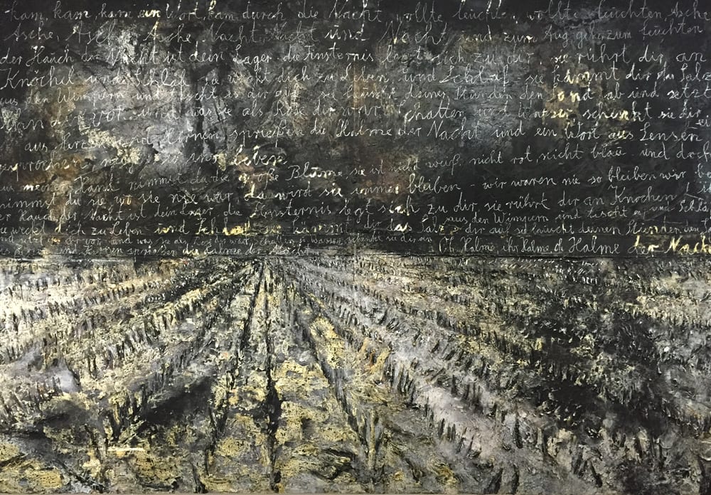 Né en mars 1945, Kiefer participe avec Georg Baselitz, Gerhard Richter, Sigmar Polke ou encore Jorg Immendorff du renouveau de la peinture allemande des années 1970, qui émerge dans un contexte international marqué par le néo-expressionnisme. L’oeuvre d’Anselm Kiefer apparaît très vite comme singulière, par son obsession à traiter de l’Histoire et des mythes propres à la culture germanique. La plongée dans le passé et la mémoire sont sa stratégie pour répondre à la question qui taraude cette génération d’artistes : comment faire oeuvre après Hitler, répondant à la célèbre injonct ion de Theodor W. Adorno : « Toute culture consécutive à Auschwitz y compris sa critique urgente n’est qu’un tas d’ordures. » En 1984, en se rendant en Israël pour une exposition, Kiefer prend conscience avec une nouvelle acuité de la perte, du deuil de la culture yiddish au sein même de la culture germanique du fait de la mise en oeuvre de la « solution finale ». Il étudie la philosophie du Talmud, les textes de la Cabbale, notamment au travers des écrits de Gershom Scholem et d’Isaac Louria. L’artiste s’inspire alors de concepts aussi complexes que le Tsimtsoum (retrait) ou Chevirat ha-kelim (brisure des vases). Anselm Kiefer commence à élaborer une oeuvre qui s’écarte de la figuration occidentale traditionnelle pour se situer dans le champ d’une symbolique ou d’une « présence ».