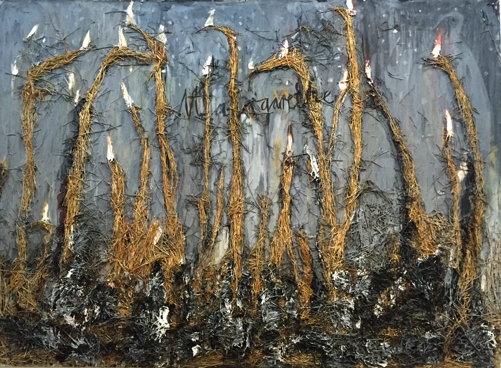 Les photos, le papier, les livres, pellicules sur lesquels il peint, dessine et qu’il brûle également