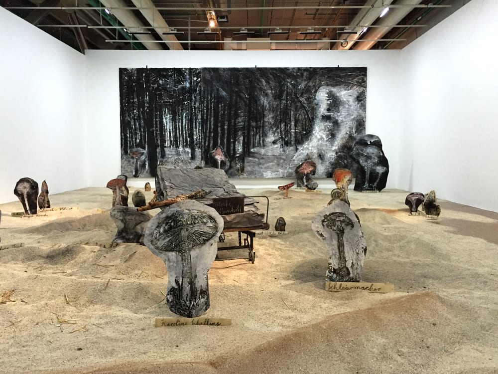 Kiefer, née en 1945, travaille sur l’histoire, le passé de l’Allemagne, ses mythes. Il s’inspire de poètes, penseurs, écrivains, cinéastes et philosophes pour nous conter au travers ses oeuvres, d’une grande mixité technique et diversité des supports, ses histoires .