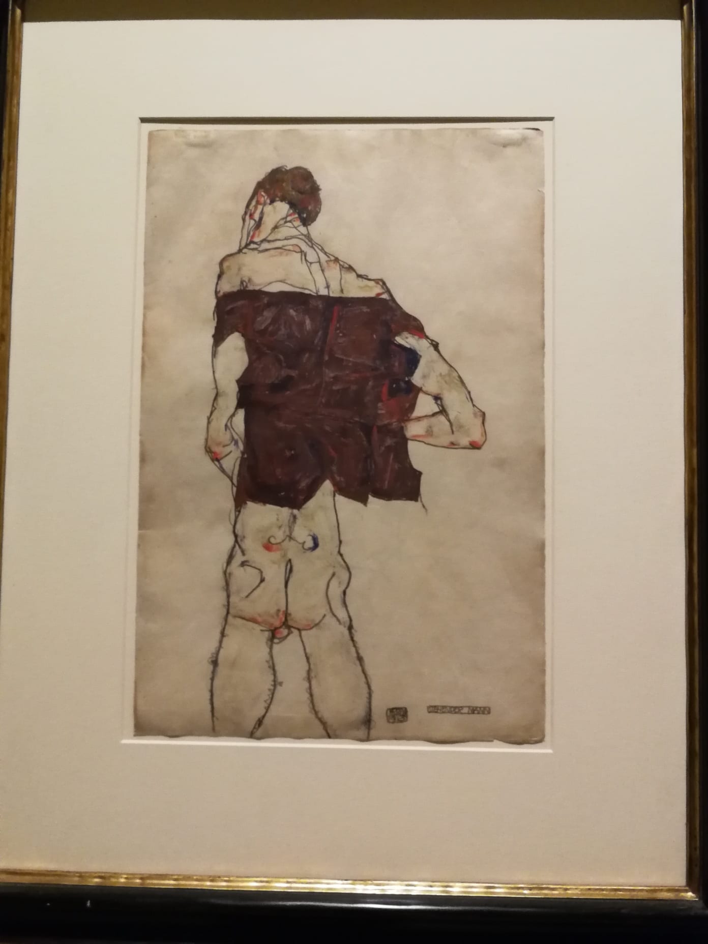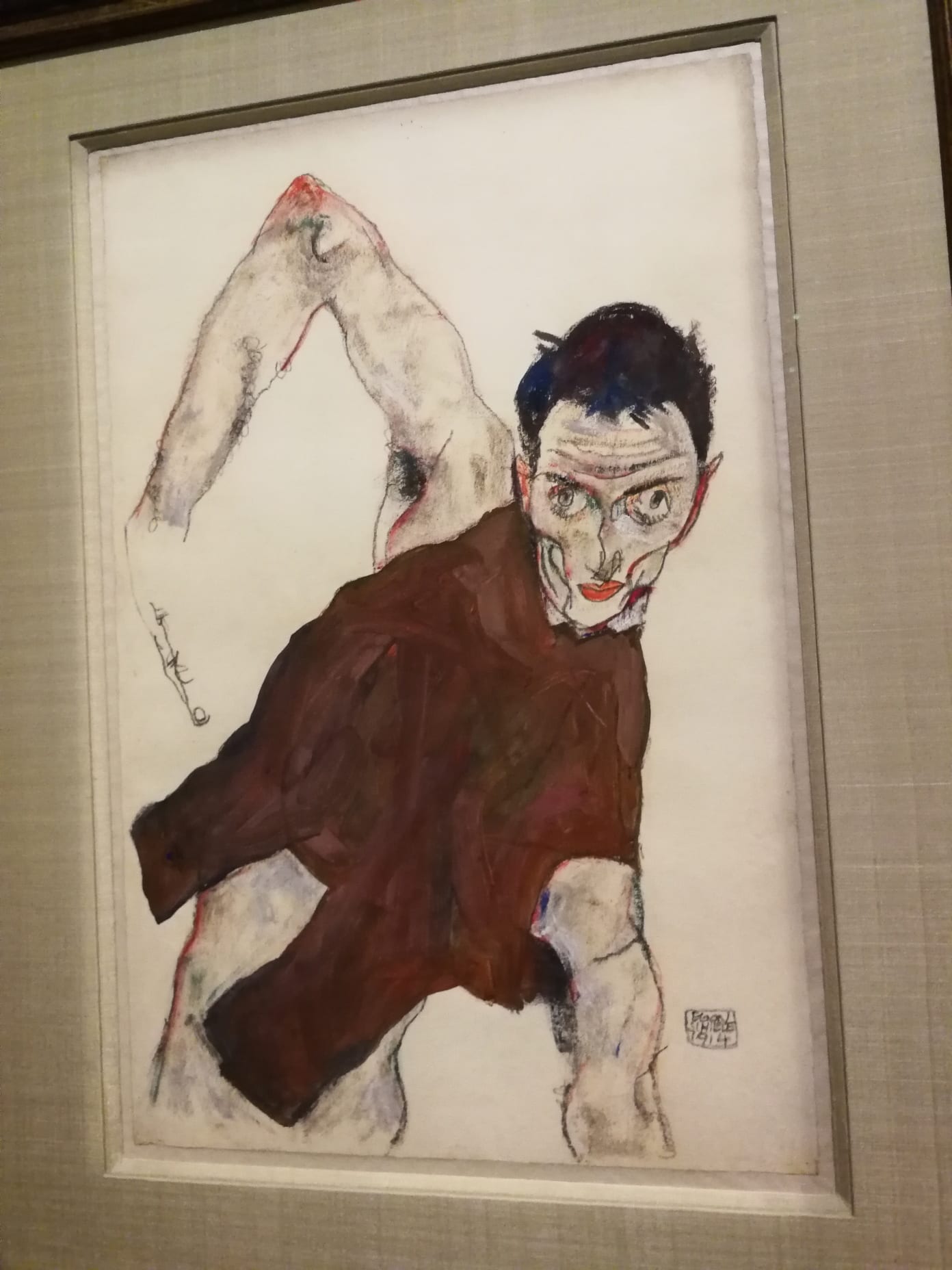 Schiele est né en 1890 en Autriche, il a été marqué par la mort d’une de ses 2 soeurs et surtout par celle de son père qui visitait les maisons closes et est décédé des suites de maladies vénériennes ( reportage Arte … fort intéressant).