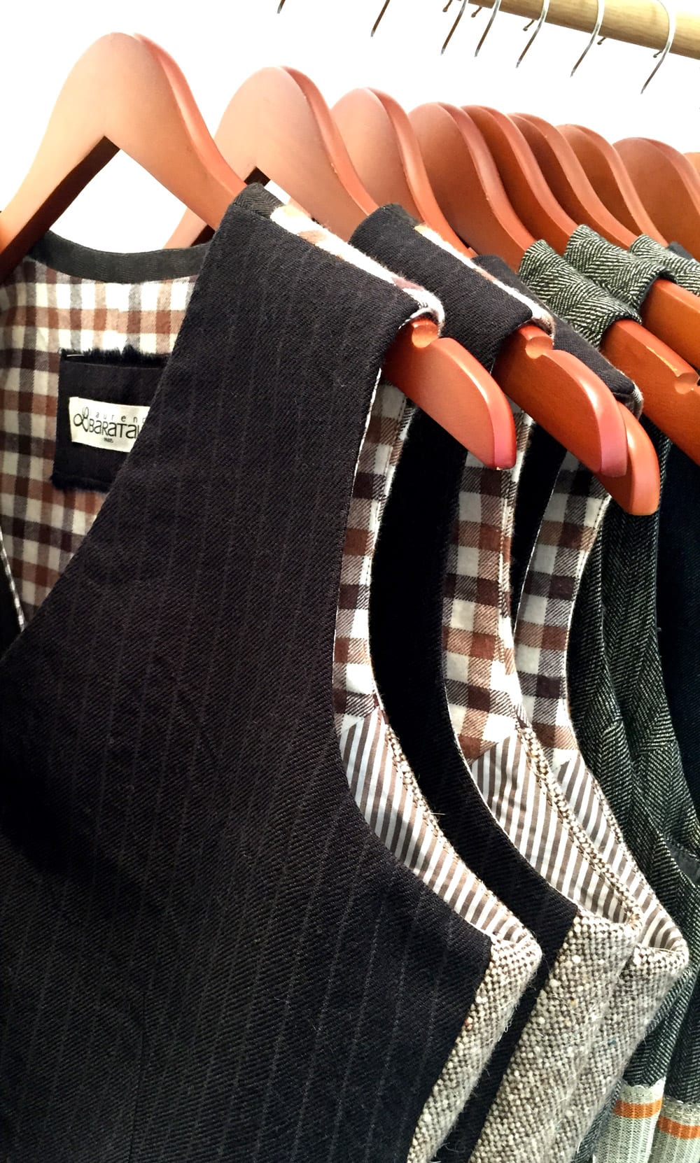 Nous adorons ces gilets qui allient classique et modernité avec son choix de belles matières, ses touches d’originalité avec leurs franges sur les poches, le choix des doublures, les piqures et surpiqures, la qualité des matières…