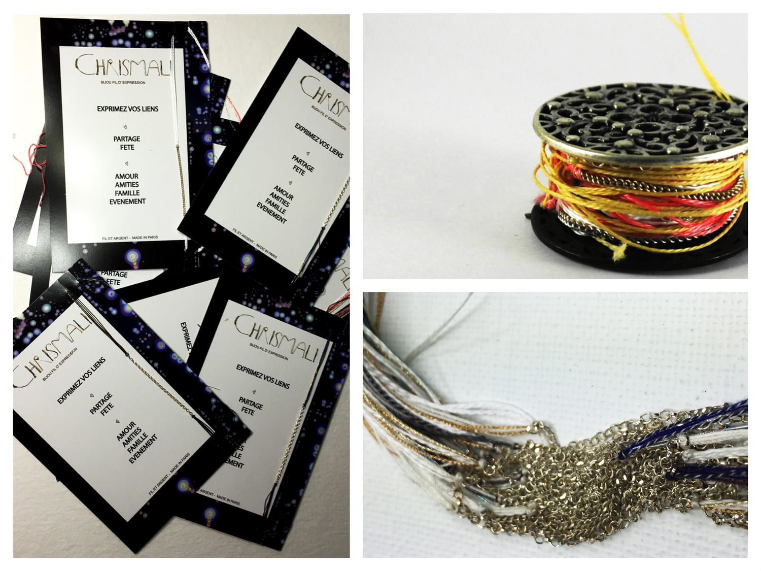 * thème qui est le mien depuis 15 ans – j’ai démarré ma seconde vie « professionnelle » avec les chrismaliens- des bijoux de fils et d’argent, des liens fragiles et éphémères qu’il nous faut entretenir…). Aujourd’hui les bijoux sont accessoires et services.