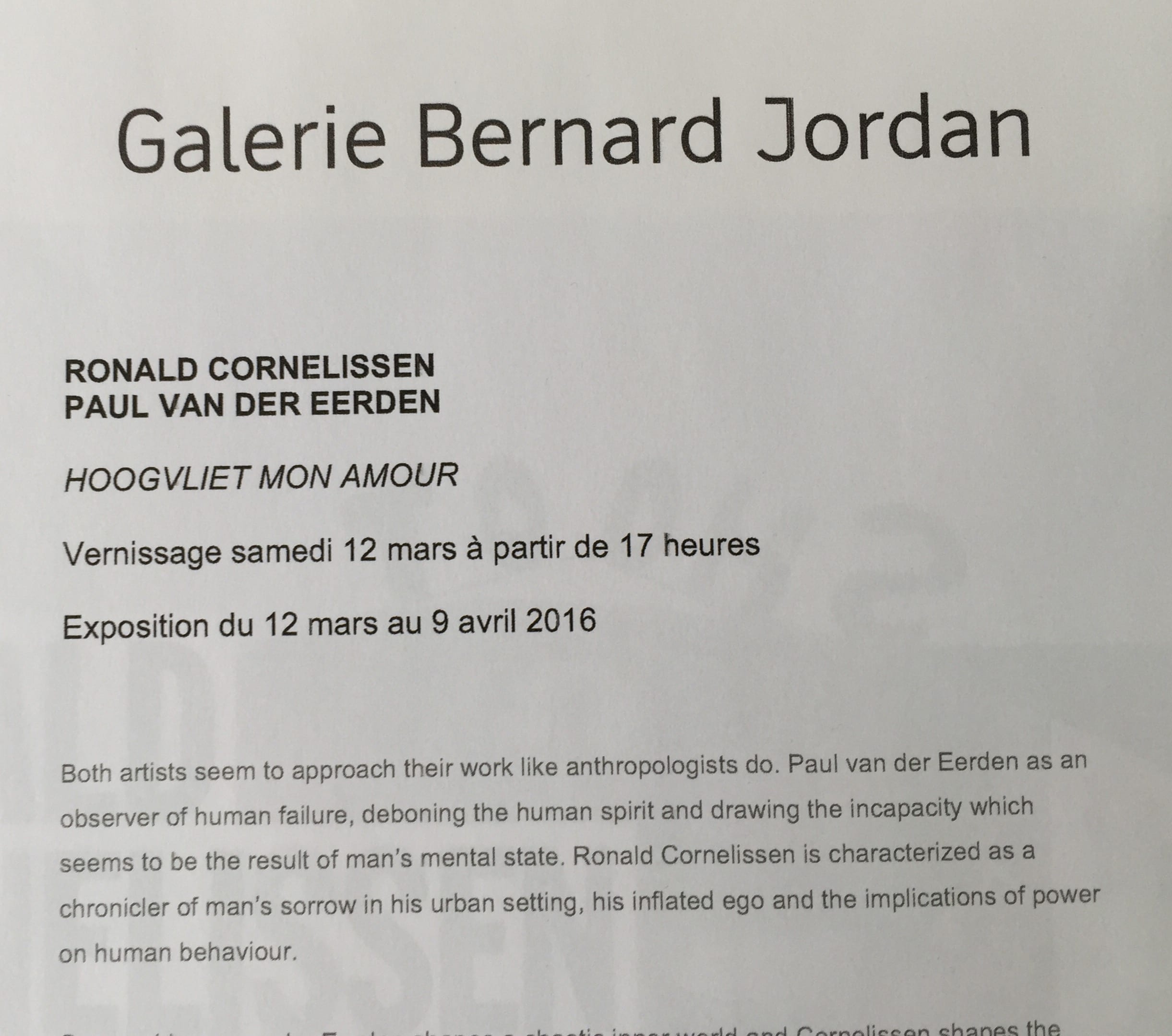 Cette fois, c’est à la galerie Bernard Jordan, rue Charlot que les dessins de cet artiste des Pays-Bas m’ont arrêtée.