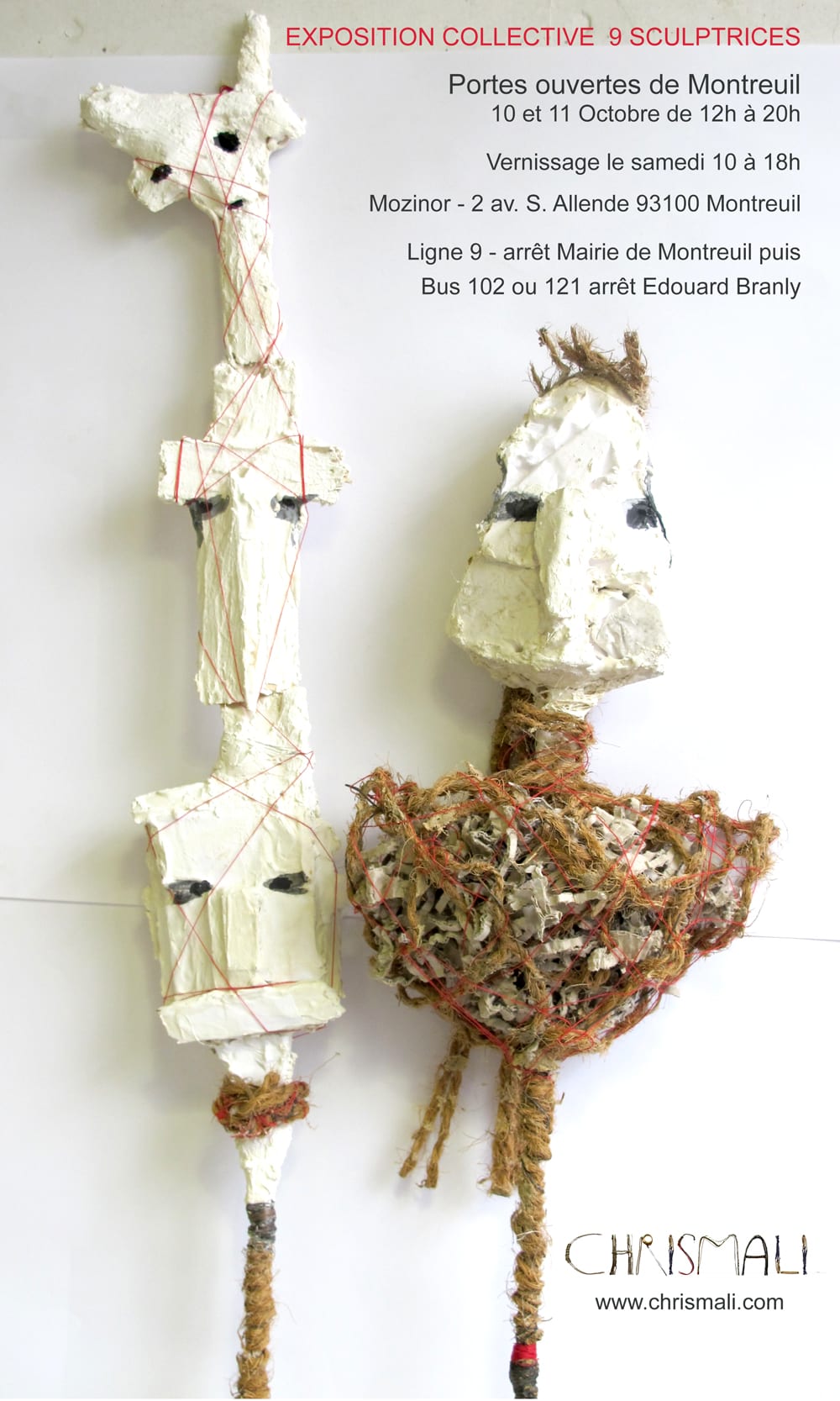 Avec le collectif SIMPPL * je participe aux portes ouvertes de Montreuil 2015 . J’y expose mes sculptures totems – sentinelles faites de fer, plâtre, bois, tissus,papiers et petits objets.